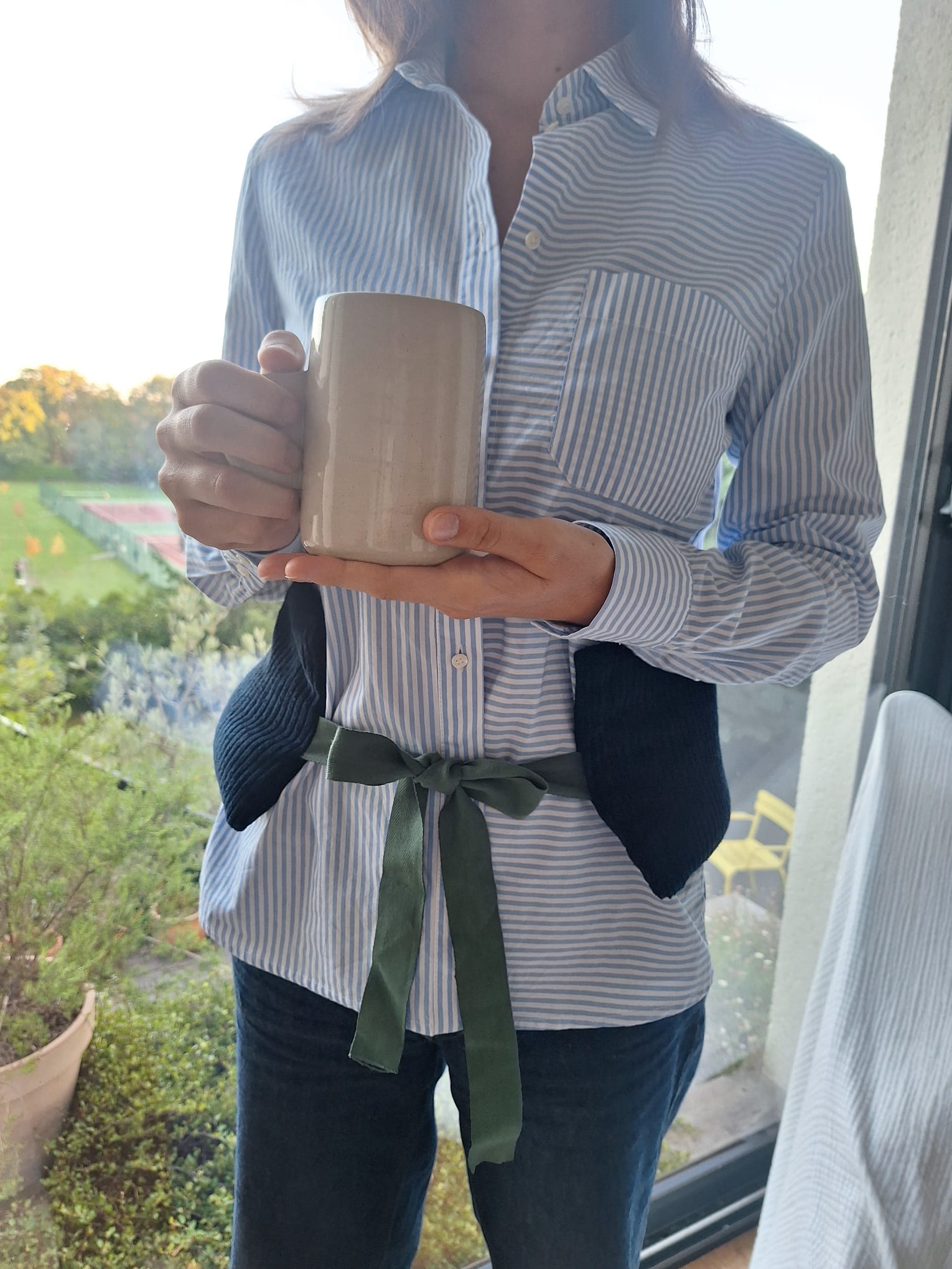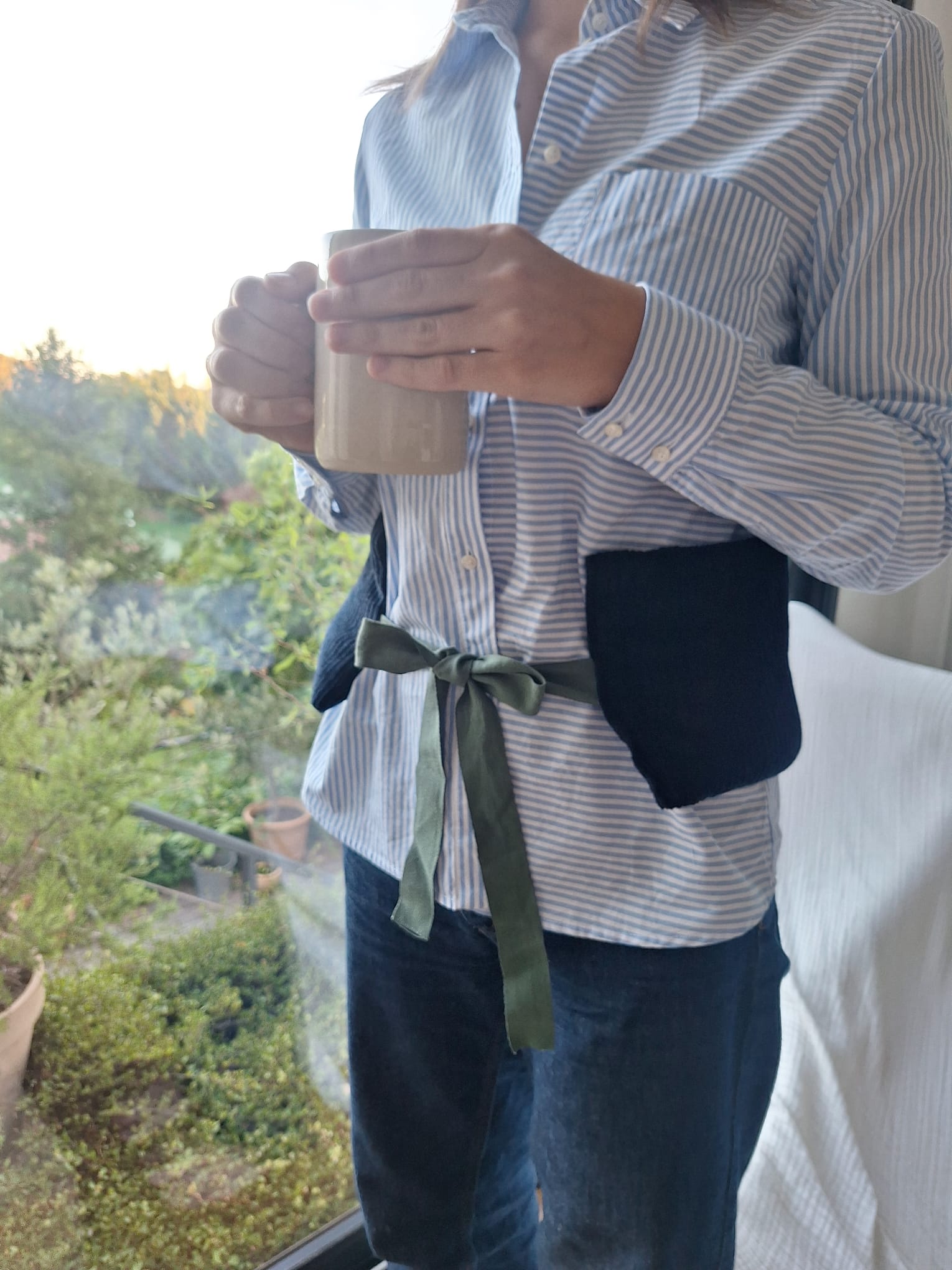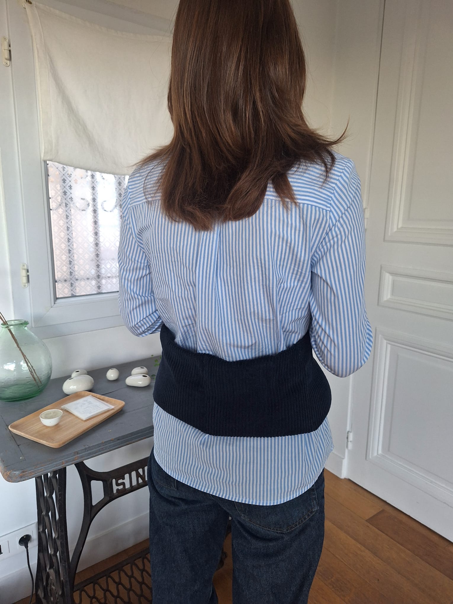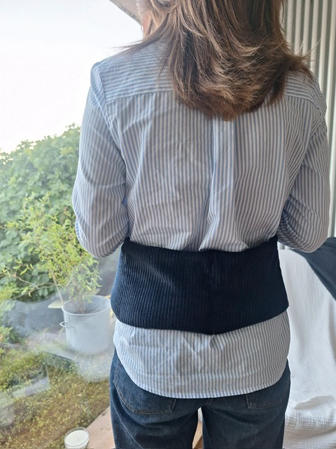 Avec son joli ruban, elle se noue autour de la taille pour soulager votre dos.